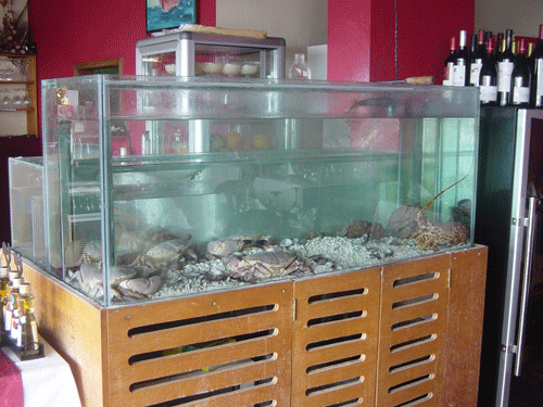 Dispõe de um aquário / viveiro com lagostas e sapateiras vivos.