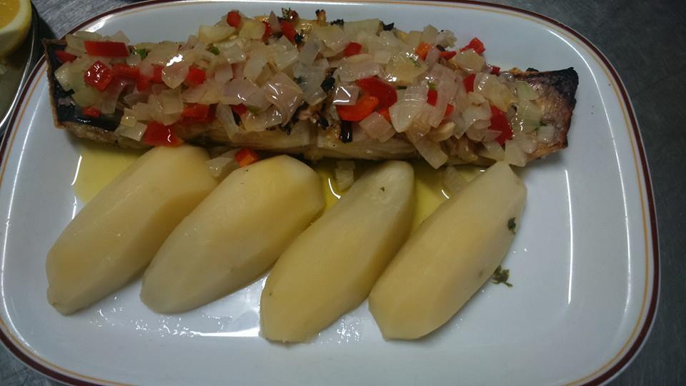 A nível de peixe temos o filete de espada fresca, atum e bacalhau na brasa.